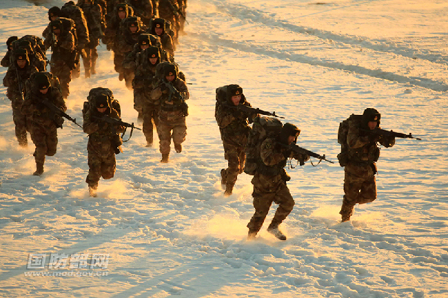美如画!边防战士雪野练兵