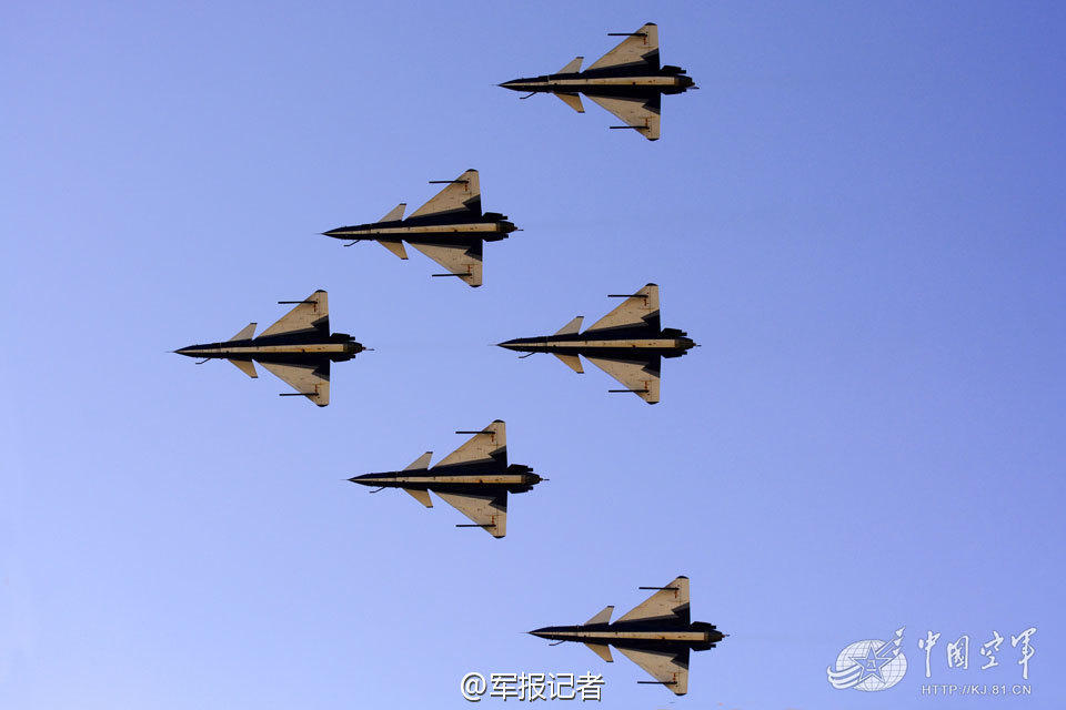1月16日11时,空军八一飞行表演队新年度首次进行六机表演训练,随着指挥员一声令下,一架架蓝白相间的歼-10表演机怒吼着跃上蓝天。