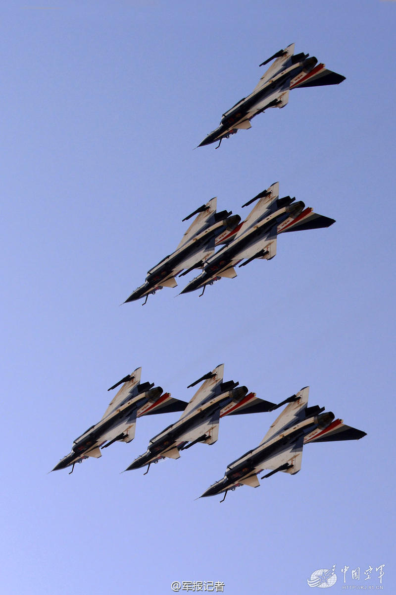 1月16日11时,空军八一飞行表演队新年度首次进行六机表演训练,随着指挥员一声令下,一架架蓝白相间的歼-10表演机怒吼着跃上蓝天。