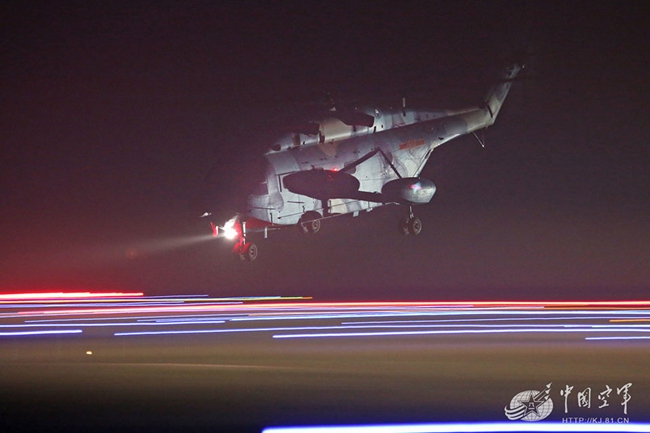 空降兵某直升机团开展跨昼夜训练,战鹰起飞。