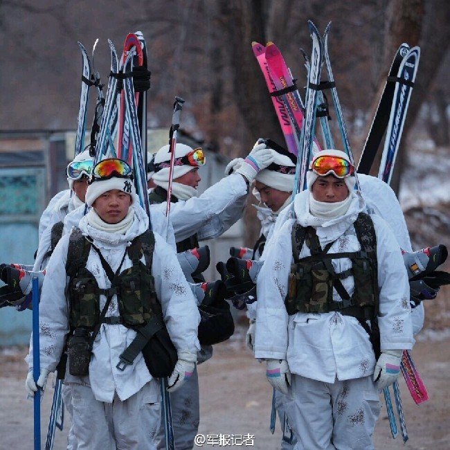 现代版“智取威虎山”: 我特种兵滑雪设备真专业 95步枪贴上白色伪装条