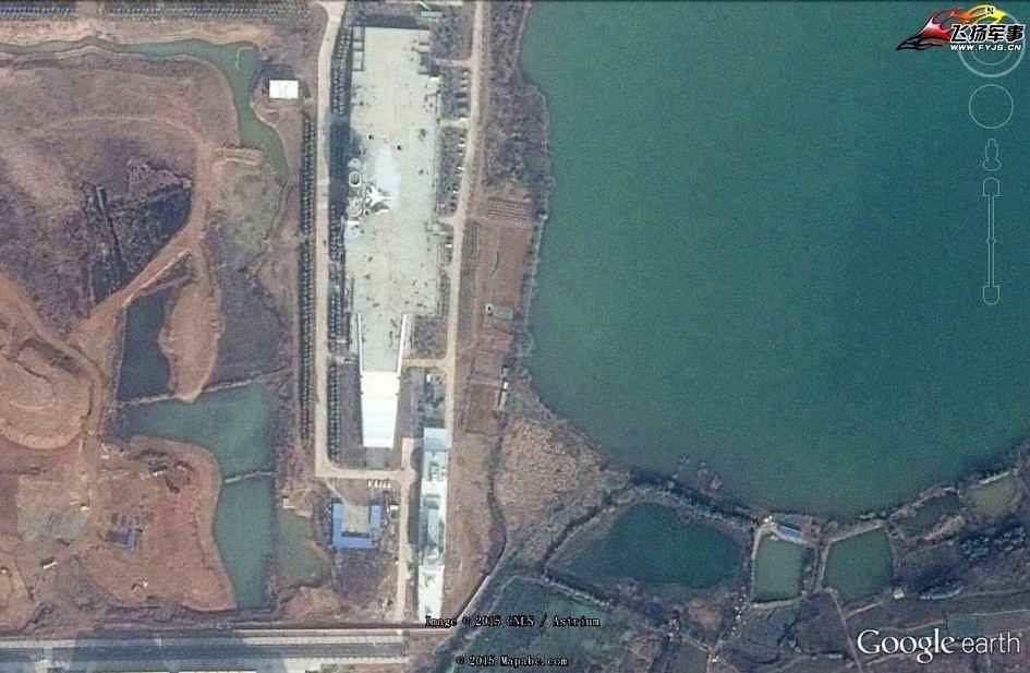 于2015年1月8日更新的谷歌地球卫星照片显示,在华中某地,一艘疑似航空母舰的大型建筑和一艘疑似大型水面战舰的陆地模型已经建成。通过测距工具可以发现,这个疑似航母模型的长度在300米左右,宽度在80米左右。(来源:环球网 图片鸣谢:飞扬军事)