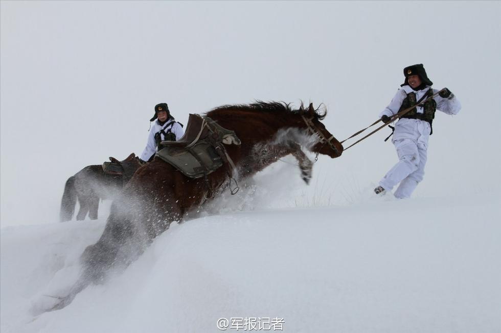 组图:边防战士骑马在-25℃雪地中巡边