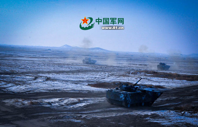 1月25日,海军陆战队执行“寒训-2015”任务部队,在洮南训练基地,按计划开展了装甲装备和各型武器实弹射击训练,检验武器装备寒区射击效能。 李爱明 摄