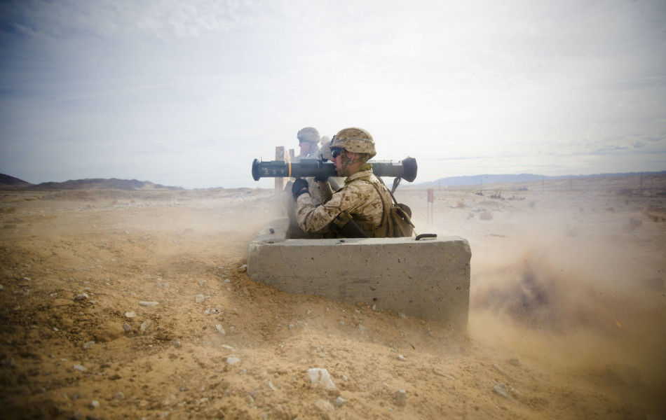 2015年1月20,美国加利福尼亚州,二十九棕榈镇海军陆战队空地作战中心。多名美国海军陆战队第3陆战团第2营的士兵正在进行射击训练。他们配备了最新型M27自动步枪,M16A4自动步枪、AT-4火箭筒还有82毫米迫击炮。训练中,美军对各型制式武器都进行试射练习。弹药管够,敞开了打!