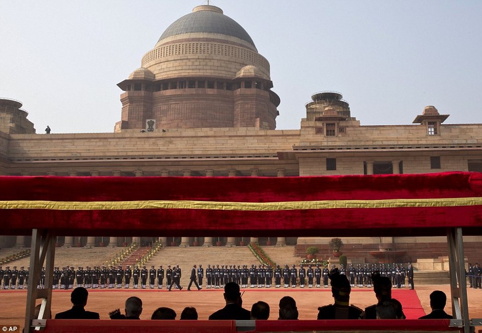 阿格拉市政府动员大约600名清洁工,在泰姬陵周边道路上驱逐奶牛、水牛、野狗,清理垃圾和痰迹。负责大扫除的当地官员昌德介绍,堪称印度城市一景的野狗在阿格拉已经被“控制起来”,清洁工仅两天内就从亚穆纳河清理出超过2吨垃圾。另一名官员说,徜徉在街道上的奶牛和水牛也“必须离开”。图为奥巴马视察仪仗队。
