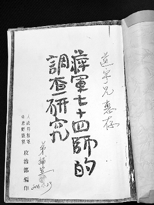 张灵甫之子张道宇保存的复印本资料《蒋军七十四师的调查研究》。