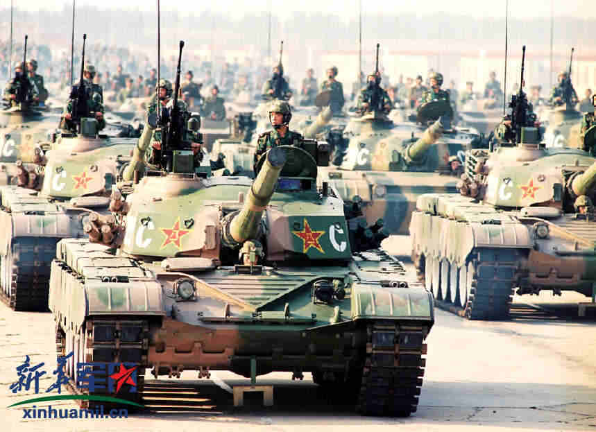 在武器装备方面,此次受阅的42种装备,90%以上都是新装备,绝大部分都是自行设计和生产的,高科技武器装备已开始成为解放军的主战武器。图为当时最新型国产主战坦克在阅兵式上首次亮相。图片来源:新华网