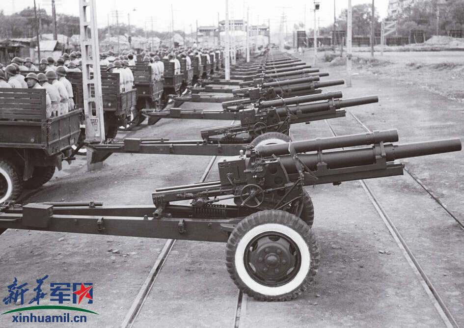 参加检阅的美国造M2A1式105毫米榴弹炮。美国1940年开始生产,是美军参加第二次世界大战的主要装备之一,解放战争中缴获。