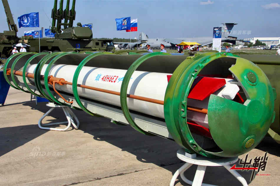 除了9M96系列之外,S-400同样可以兼容使用48N6E系列导弹,包括最新改进型48N6E3。虽然其尺寸没有太大变化,但由于使用了性能更好的发动机,其最大射程进一步延伸到250km,可以拦截60km外弹头再入速度达14-15马赫的中程弹道导弹。未来它将和红旗-9系列组成空军大气层内反导体系。
