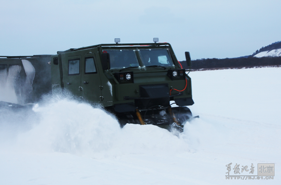 今年该团闯冰道,使用的是两辆自主改装后新型履带式边防全地形巡逻车进行推建,这是他们第二次使用该装备进行推建冰道。