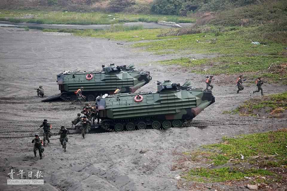1月28日,台湾“军方”在春节临近之际,组织媒体记者到部队进行采访报道,实地见证台军士兵的战备训练。活动中,台湾“军方”出动了“海军陆战队”在高雄港进行反突击实兵演练,表演了登陆、攻坚、狙击等科目。