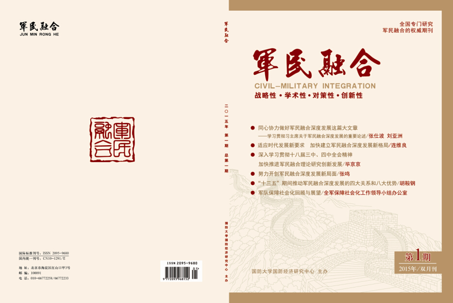 《军民融合》将坚持战略性、学术性、对策性、创新性和开放性的定位,注重从国家宏观层次研究融合战略,注重从学术层面研机析理,注重从实践发展角度探讨融合对策,注重从国际比较视角揭示融合趋势。其服务对象,主要是军地军民融合职能部门,军工集团、民参军重点企业、军民融合工业园区(基地)等实际部门,军地各主要高等院校图书馆和有关学者。刊物为双月刊,主要包括高端论坛、发展战略、体制机制、法律法规、各重点领域军民融合、案例研究、国际视野、学术动态等栏目。