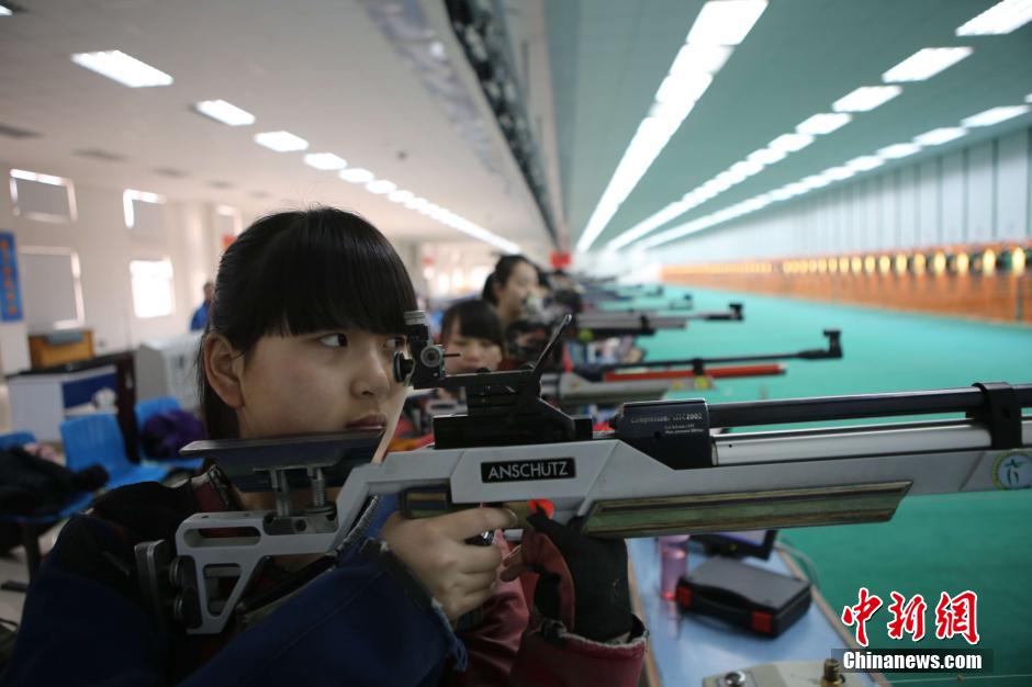 1月30日记者探访河南省射击运动管理中心女子训练营,训练馆内异常的安静,只有安静,运动员才能集中精力瞄准目标。一字排开的30余名姑娘正在进行实弹训练,三点一线 全神贯注瞄准目标,举枪、放下,举枪、再放下……他们不厌其烦地一次次重复相同的动作,只为了能够保证打出去的子弹能够更精确,这些刻苦训练的少女军团中将会产生优胜者代表河南参加首届全国青年运动会。据悉,第一届全国青年运动会将于2015年10月18日至27日在福建省举行,运动会共设26个大项、306个小项。王中举 摄
