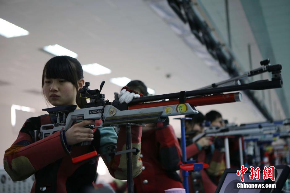 1月30日记者探访河南省射击运动管理中心女子训练营,训练馆内异常的安静,只有安静,运动员才能集中精力瞄准目标。一字排开的30余名姑娘正在进行实弹训练,三点一线 全神贯注瞄准目标,举枪、放下,举枪、再放下……他们不厌其烦地一次次重复相同的动作,只为了能够保证打出去的子弹能够更精确,这些刻苦训练的少女军团中将会产生优胜者代表河南参加首届全国青年运动会。据悉,第一届全国青年运动会将于2015年10月18日至27日在福建省举行,运动会共设26个大项、306个小项。王中举 摄