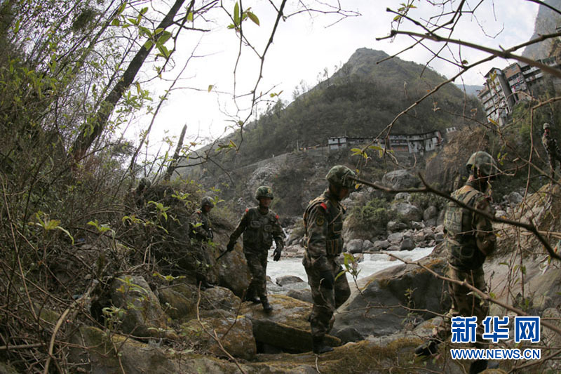 官兵在中尼界河边巡逻