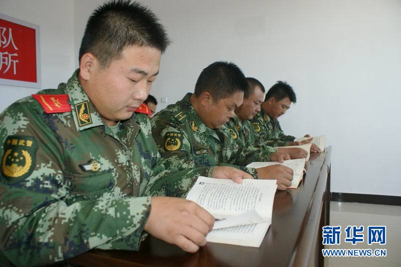 孙晓峰(左一)利用业余时间读书