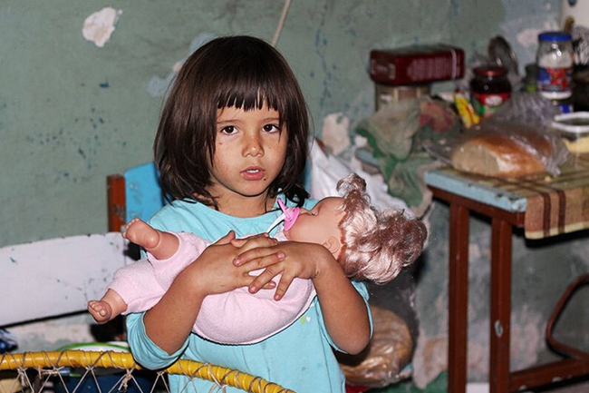 顿涅茨克彼特罗夫斯克区,防空洞里的小女孩(网页截图)