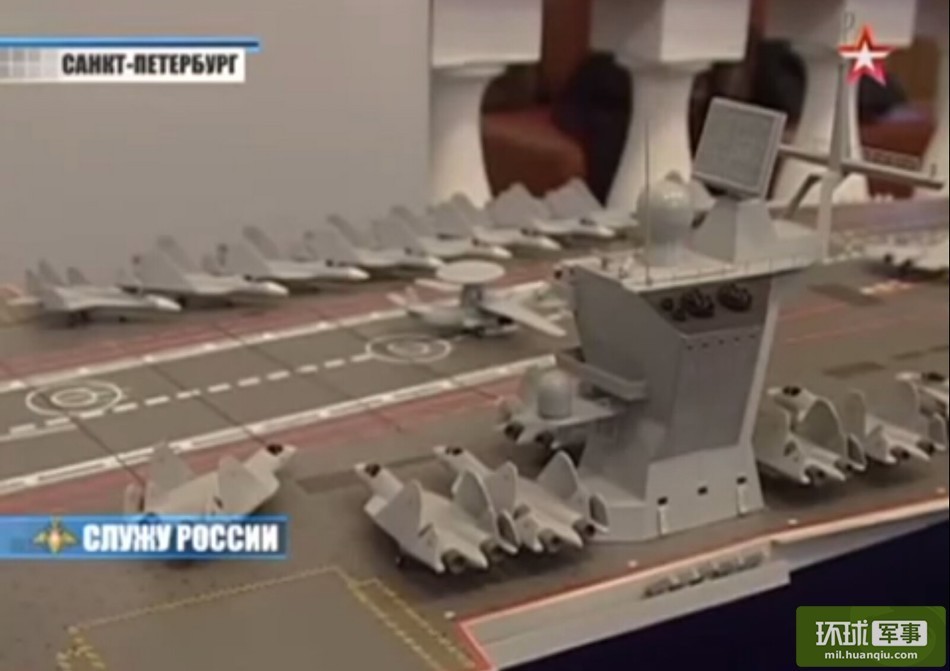 近日,俄罗斯电视台公布了一段记者在俄罗斯造船领域研究机构维多国家研究中心进行采访的画面,出现的两艘新型军用舰船模型引起了不小关注。其中一艘为新型的护卫舰模型,该舰采用了巨大的集成化多功能桅杆设计;还有一艘为双舰岛结构航母模型,上面搭载了疑似俄罗斯第五代战斗机的舰载版本。