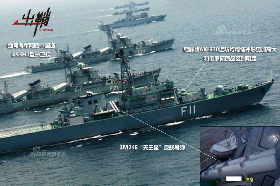 虽然朝鲜版“天王星”目前尚未有KN系列代号,但反正KN系列代号也挺随意的,新浪军事姑且以KN-11称之。据说,KN-11的技术来源和缅甸有关,缅甸海军新型护卫舰“雍籍牙”级使用的反舰导弹就是3M24E,而该舰上的AK-630近防炮就来自朝鲜,在缅甸军政府时期,两国军事交往一直频繁。