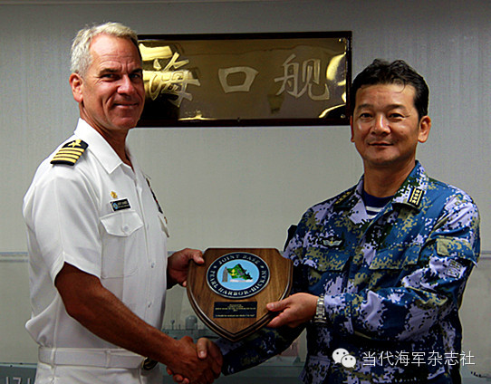 在海军的外事交往中,经常可以看到这样的场面,双方手中的物品就是舰徽。舰徽是海军舰艇的标志,其复制品可用于对外交往活动时的馈赠礼品,由舰艇主官赠送。