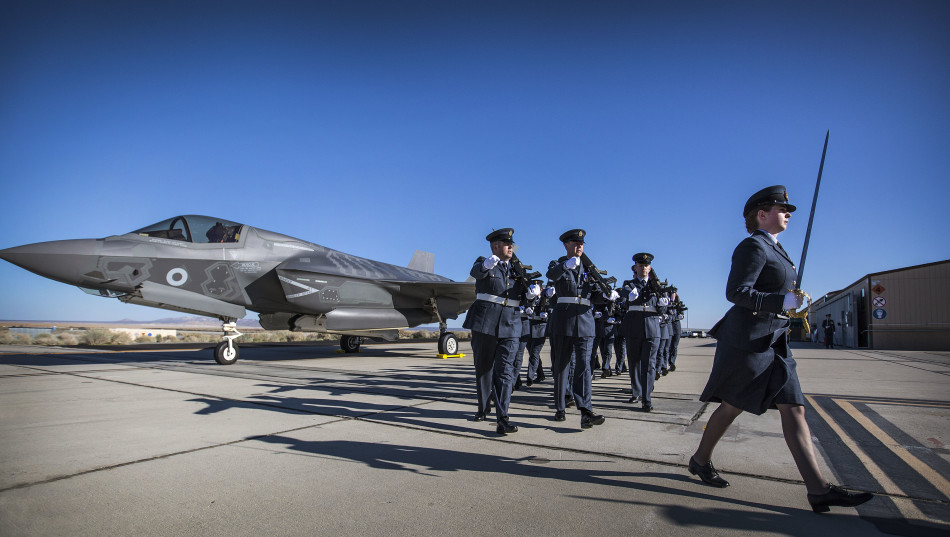 2015年,2月9日,加利福尼亚爱德华兹空军基地 ,英国皇家空军第一支F- 35闪电II中队举行成立仪式。