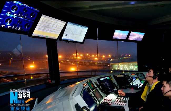 2月5日,重庆江北机场塔台,塔台管制员叶伟查看实时的气象信息,以告知飞行员。