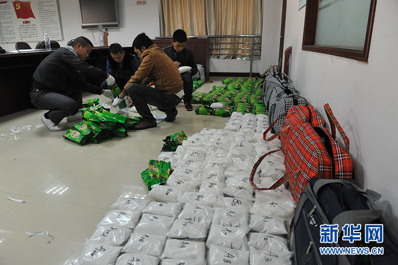 办案民警清点缴获的毒品