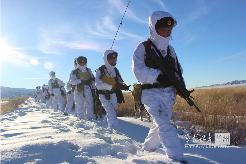 图为解放军边防部队在边境武装巡逻,新型雪地伪装服与周围环境相差无几,而未经伪装的战斗装具与自动步枪则显得很抢眼。大概是常规部队,又是执行常规任务的原因,伪装细节上还不够,相信在不久的未来也会得到改进。图片来源:军报记者网