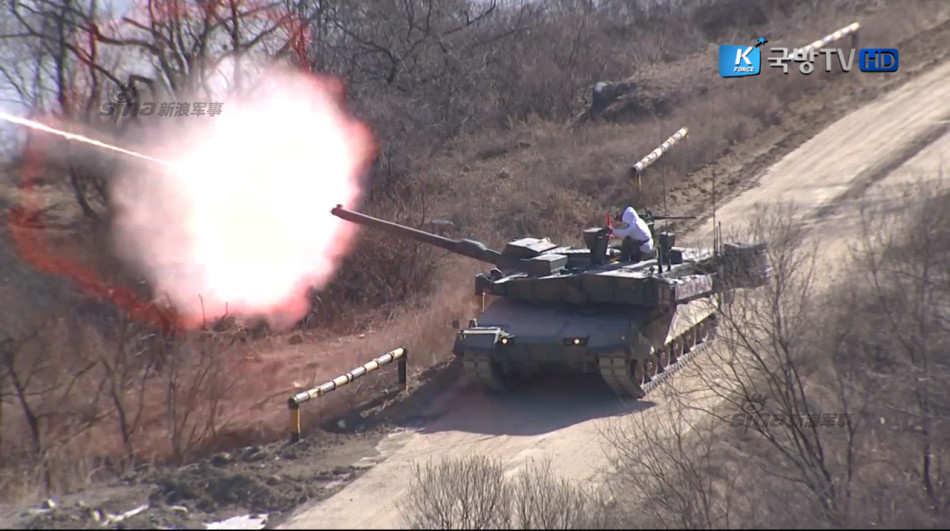 2015年2月11日,韩国首尔以北90公里处京畿道(即38线)韩军第20机械化步兵师出动4辆最新型K-2主战坦克,进行实战战术、实弹攻击科目演练。K-2坦克动用了120毫米前主炮、车载7.62毫米并列机枪、12.7毫米车载重机枪对目标区一通狂扫乱射。展示了其有能力反击朝鲜任何可能攻击的强大战力。