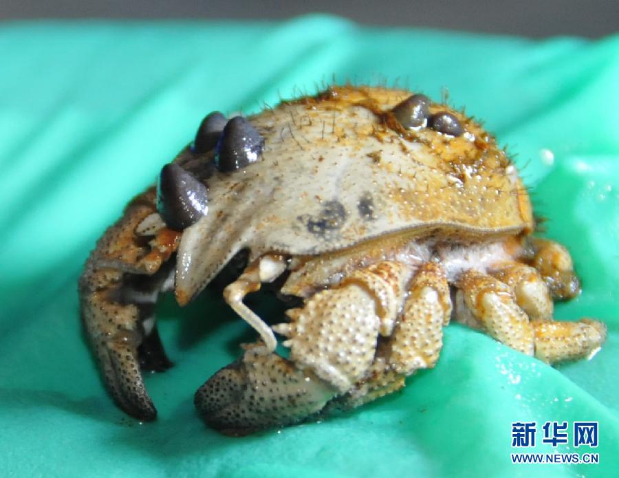 “蛟龙”号采集到的铠甲虾(1月14日摄)。1月14日,中国载人潜水器“蛟龙”号在西南印度洋龙旂热液区下潜,在一低温热液区布放了硫化物生长仪和生物捕获器等仪器。采集到形态、大小各异的热液区铠甲虾共15只。新华社记者 张旭东 摄