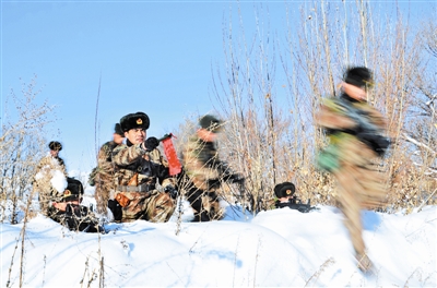 2月20日,新疆军区塔城军分区加曼奇边防连组织防偷袭演练。赵永峰 摄
