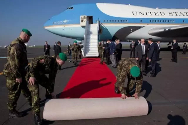 2010年,奥巴马总统搭乘空军一号抵达布拉格国际机场 来源:美国白宫