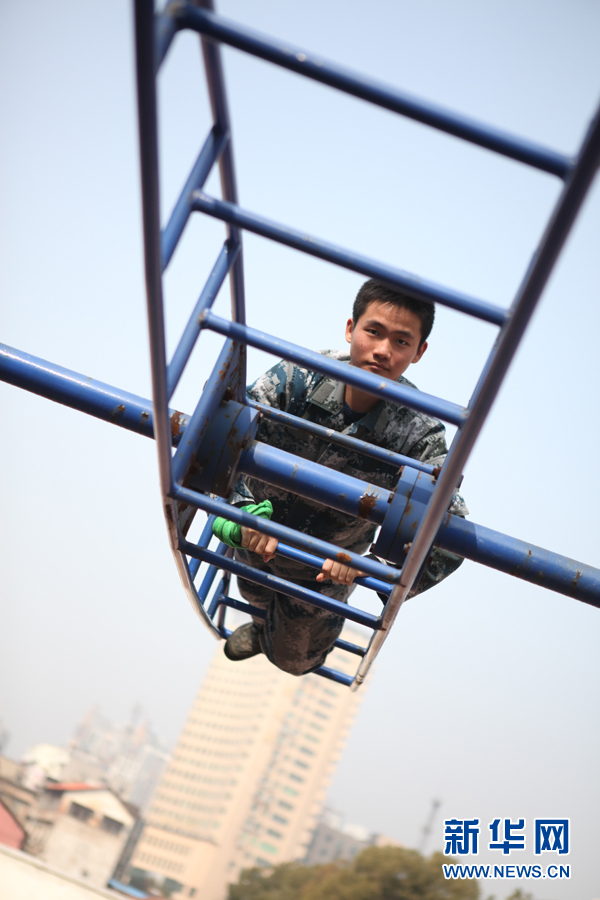 我国曾采取开办滑翔班、建立飞行学员早期培养基地、试办飞行少年军校等形式培养飞行苗子,孕育和培养出许多优秀飞行人才。图为武汉六中航空教育实验班学生在旋梯上训练。徐洲 摄