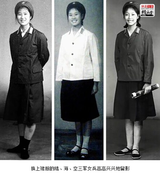 65式军服及其改良型71式、74式、78式整整实行了20年,是解放军装备时间最长的制式服装。图为74式女兵裙服。