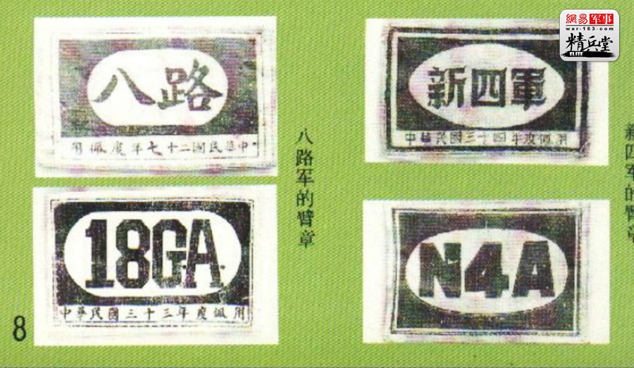 1937年7月7日“卢沟桥事变”后,抗日战争全面爆发。在中国共产党建立抗日民族统一战线的主张下,中国国民党和中国共产党联合抗日。中国工农红军主力部队改编为八路军、新四军后,着国民党军服,佩带“青天白日”帽徽,八路军佩戴“八路”二字的长方形臂章,新四军佩带“新四军”或“N4A”的臂章。军服颜色,八路军多为土黄色,新四军多为灰色。
