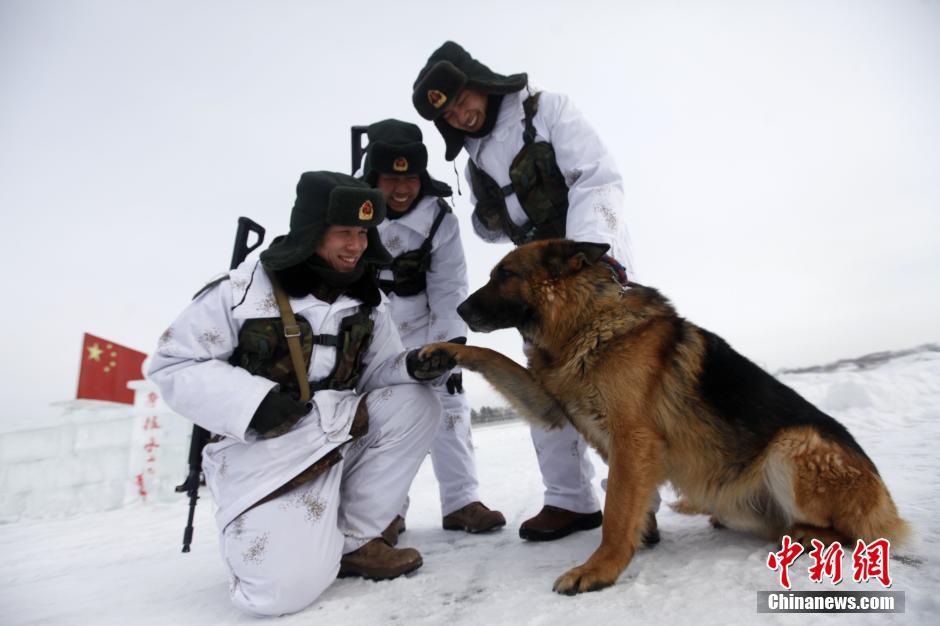 边防军犬好可爱巡逻途中“主动”要求哨兵暖脚