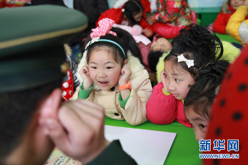 边防官兵教幼儿们做爱耳护耳保健操