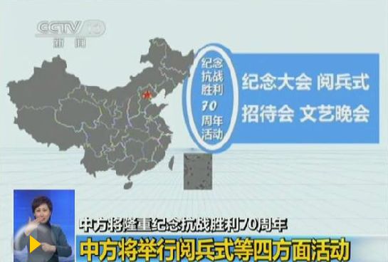今年是中国人民抗日战争暨世界反法西斯战争胜利70周年。中国将举行阅兵等隆重纪念活动。