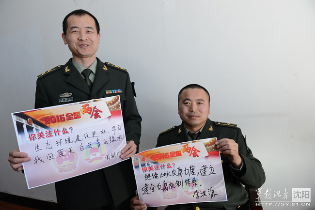 解放军官兵举牌期待两会:全面开放生育二胎政策[高清]