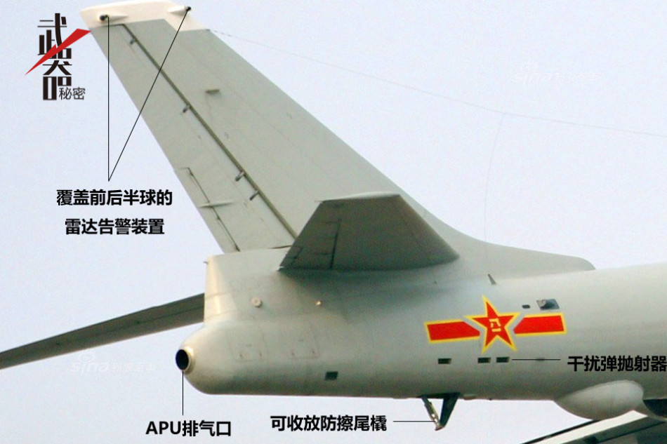 为了保障新增电子设备运转,提高机内环控标准,轰-6K尾炮塔取消后的空间增加辅助动力装置(APU),提供额外电源和气源。轰炸机的地面保障勤务远比战斗机要复杂,因此轰-6K增加APU后也将增强其自主保障能力,特别是有利于大机群的转场部署,这都是为了大载荷远程飞行精心考虑的。
