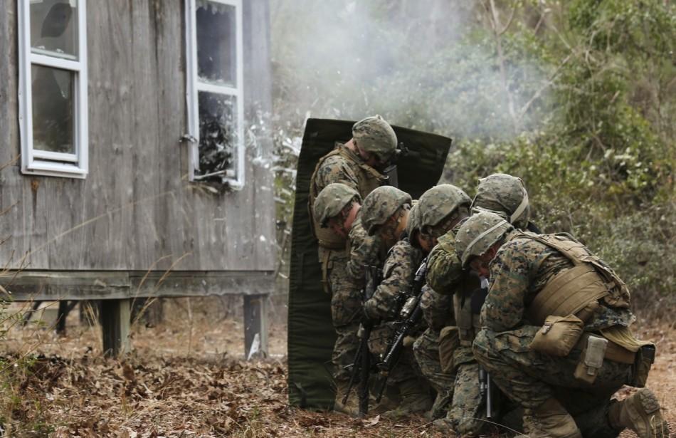 组图:美军训练爆破破门 披防爆毯防御碎片