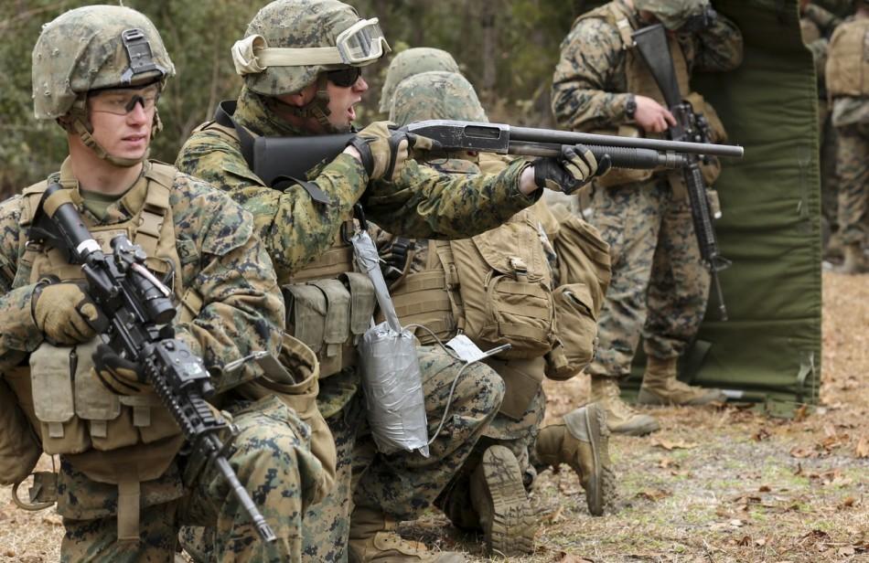 组图:美军训练爆破破门 披防爆毯防御碎片