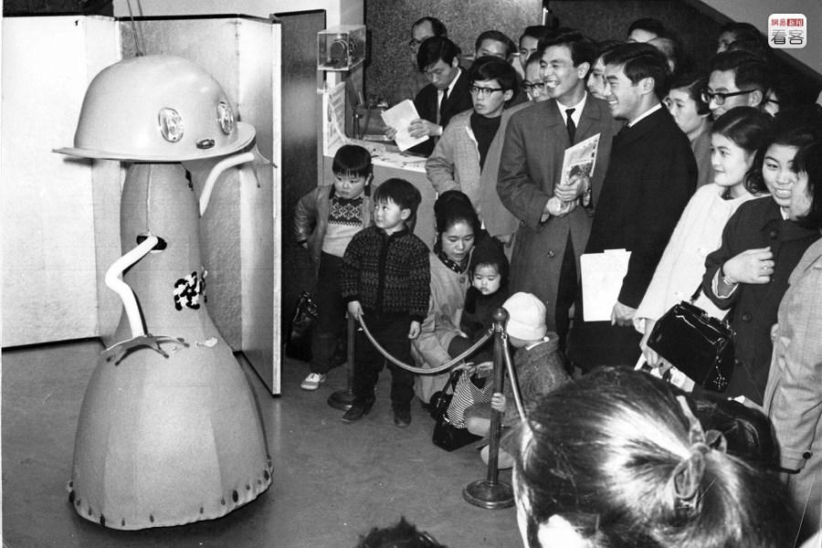 1969年,日本早稻田大学加藤一郎实验室研发出第一台以双脚走路的仿人机器人。加藤一郎也被誉为“仿人机器人之父”。以加藤一郎先生为首,日本正式开始了仿人机器人的研究。图为当地时间1966年12月13日,日本东京,一个有着奇怪形状的机器人在百货公司里扭动跳舞,唱歌说话吸引圣诞节前来扫货的顾客。Gamma-Keystone/Getty Images