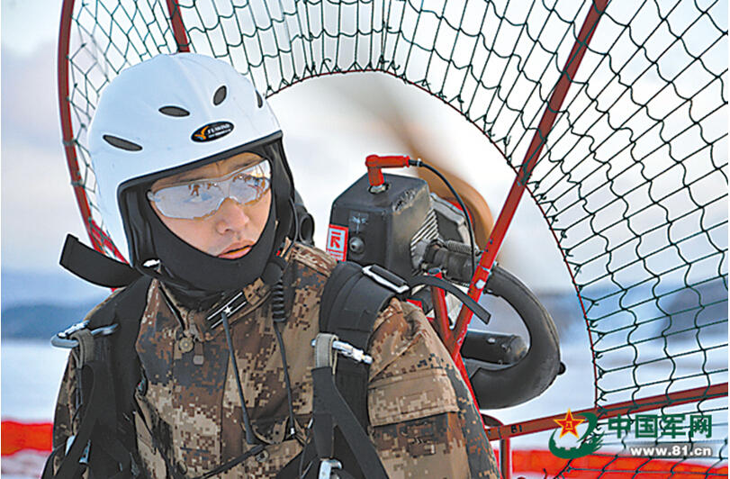 组图:我军预备役装备新型雪地突击车和动力伞