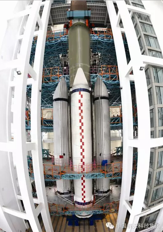 随着长征五号运载火箭整流罩的缓缓下落,该火箭最近在天津圆满完成了所有部段的进塔工作。中国新一代大型运载火箭首次向世人展示其全貌。目前,该型火箭全面进入全箭模态试验阶段。