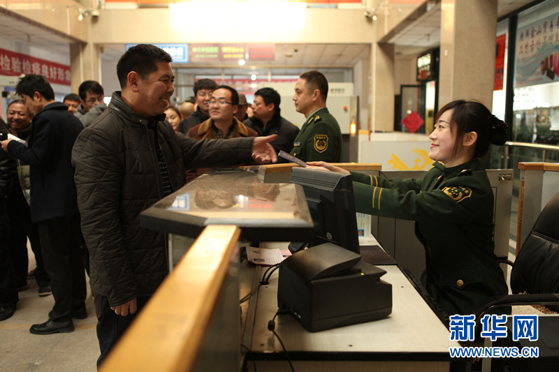 检查员微笑服务出境游客
