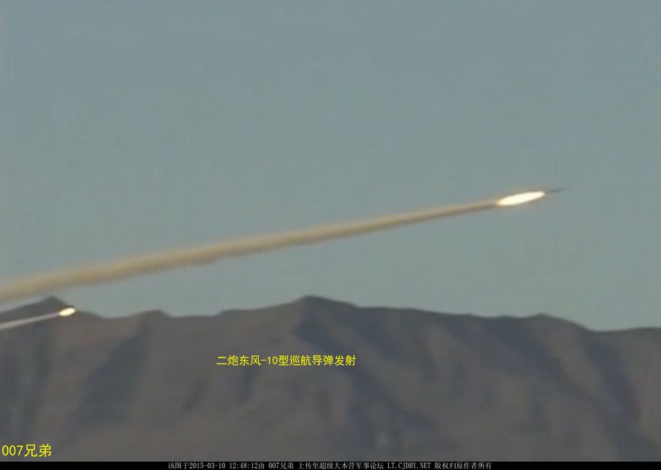 近日,央视新闻节目曝光了国产新型巡航导弹双发齐射的壮观场面。从外形上判断,该型导弹为我国新型的长剑-10型巡航导弹。在日前的报道中,该导弹弹头上出现DF-10的字样,很可能正式命名为“东风-10”。