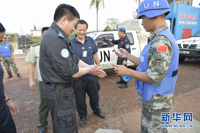 14时30分,维和警察防暴队政委李培森、队长张广保从营地出发,驱车前往首都,与先期到达的公安部轮换工作指导组的人员卢聪、许亮、唐立江汇合,一同拜访中国驻利使馆、维和运输分队。