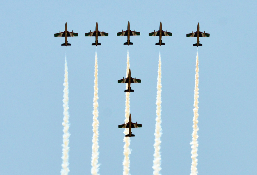 3月17日,在马来西亚兰卡威,阿拉伯联合酋长国飞行队在表演。当日,第13届兰卡威国际海事与航空展在马来西亚兰卡威举行。本届海空展为期5天,吸引了来自36个国家和地区的512家参展商参展。
